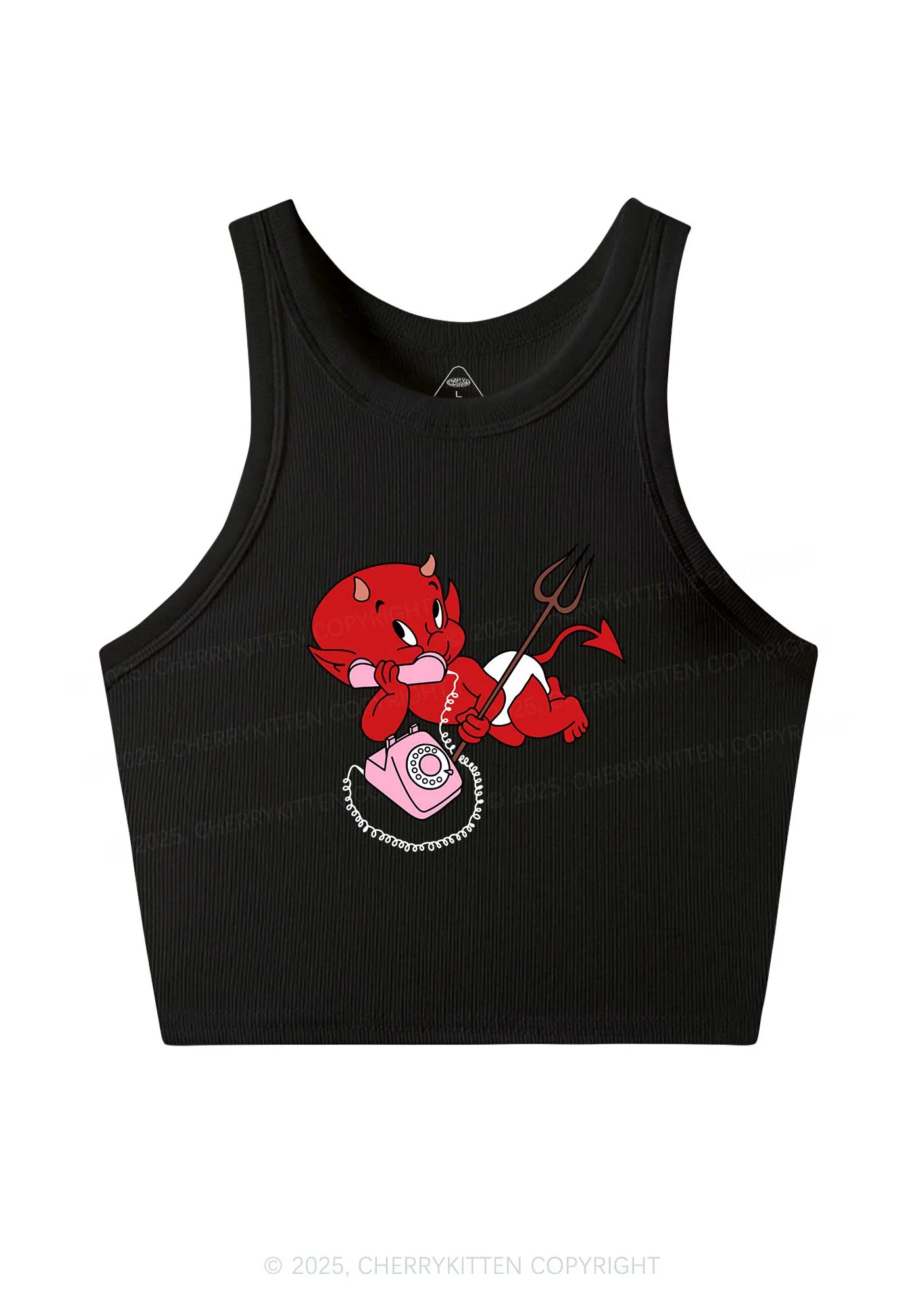 Little Devil On The Phone Y2K Crop Tank Top Cherrykitten